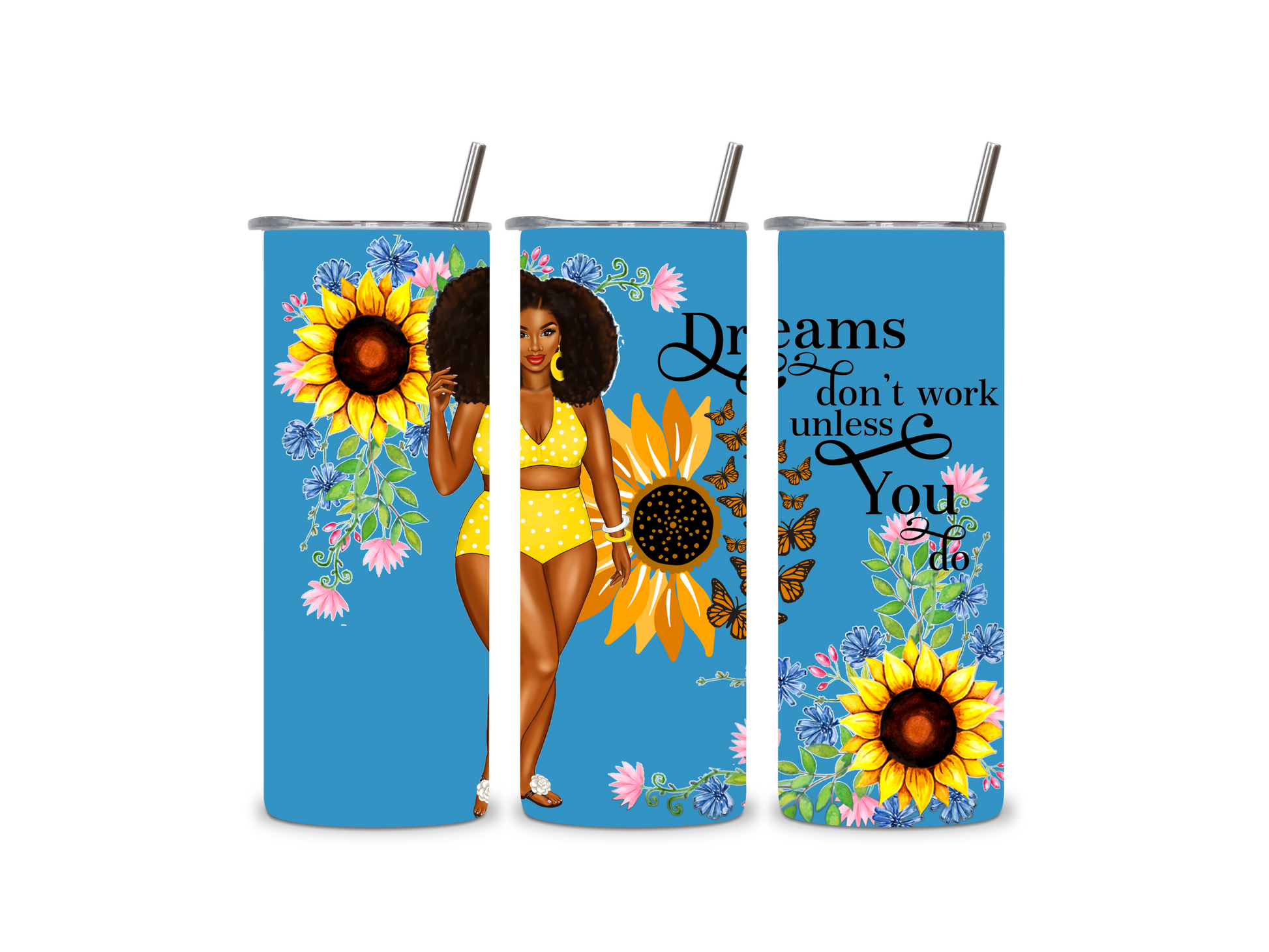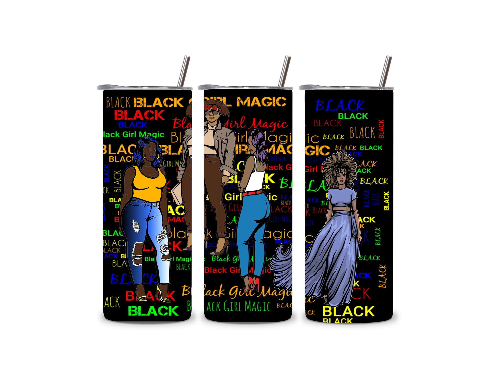 Black girl themed tumblers with inspirational, powerful, boss lady vibes and black girl magic! Tumbler sizes 20oz and 30oz.